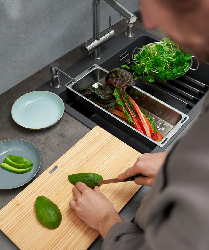 Omkring 60% af vores tid i køkkenet bruges på arbejdsopgaver, der foregår i og omkring køkkenvasken. Derfor vil du blive glad for at bruge lidt ekstra tid på at indrette netopå dette område, når du planlægger dit nye køkken.