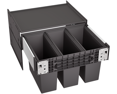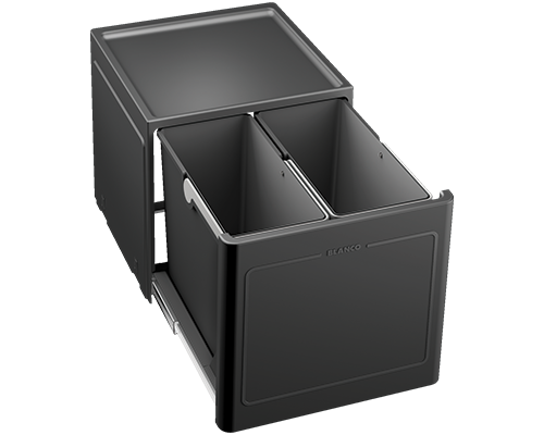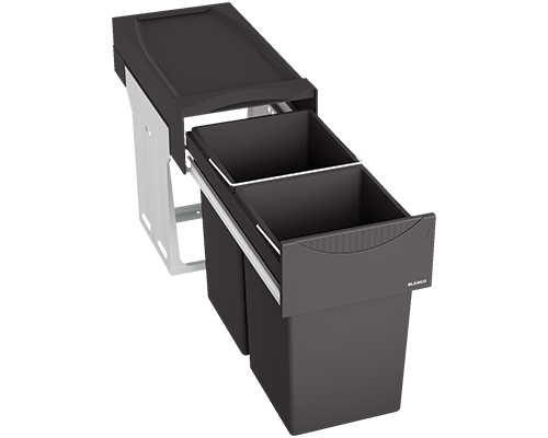 Har du valgt en mindre vask - fx NAYA 45 eller NAYA 5 - har du nok brug for et mere kompakt system til skabet på 45 eller 50 cm. BLANCOs BOTTON II giver dig to spande på 15 liter hver, der nemt trækkes ud. Systemet kræver kun 30 cm skabsplads og kan placeret fleksibelt i skabet, så der er lidt ekstra opbevaringsplads ved siden af.