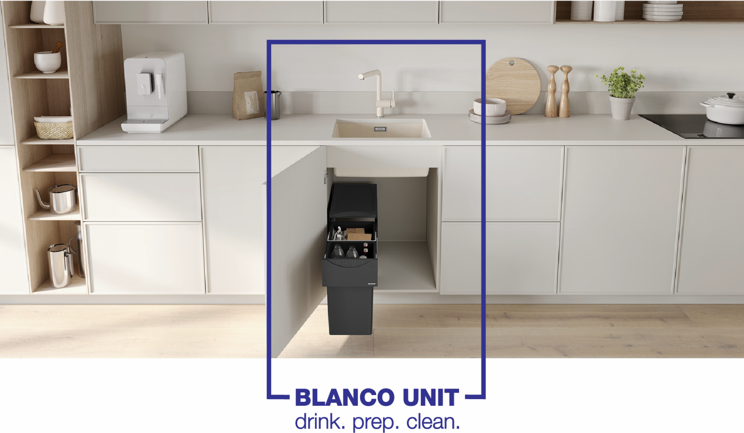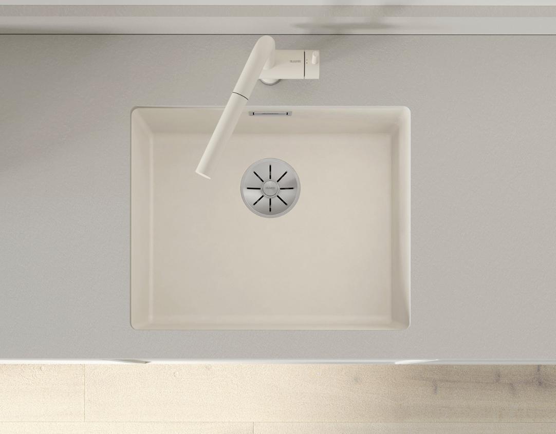 Inviter hyggen ind i køkkenet med detaljer i knækket hvid og gyldne toner. Den nye BLANCO Silgranit farve soft-white er hyggelig, lys og sofistikeret og i kombination med metaldetaljer i satin gold tilføres eksklusivitet og en varm stemning i indretningen. Skab et harmonisk look ved at kombinere den råhvide vask med et matchende armatur i samme bløde farve.