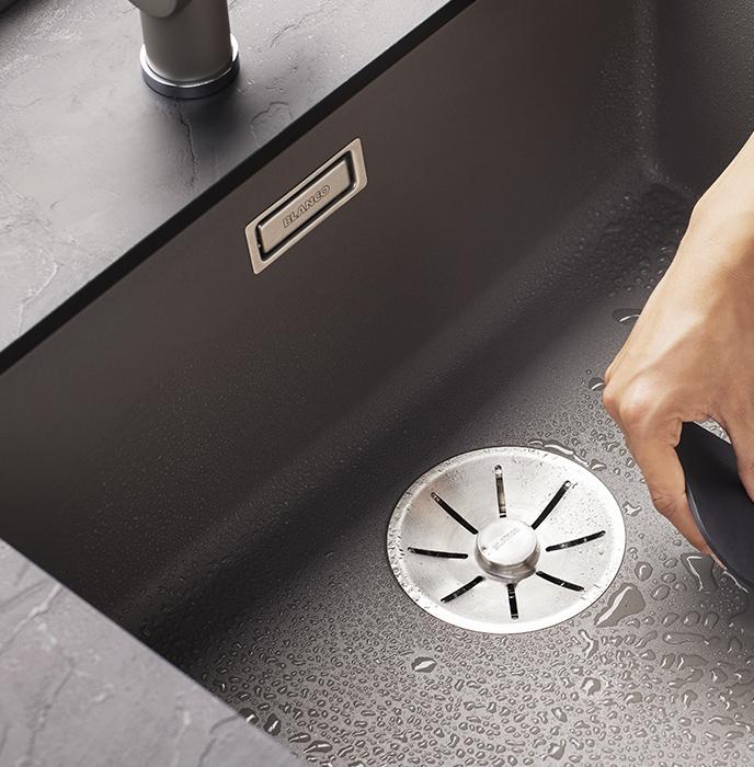 Silgranit-materialet fra BLANCO er ekstremt stærkt og holdbart, hvilket gør det til et praktisk valg til dagligdagens mange opgaver i og ved køkkenvasken. Materialet indeholder 80% kvartssand - den hårdeste del af granitten - der giver Silgranit sin robuste overflade.